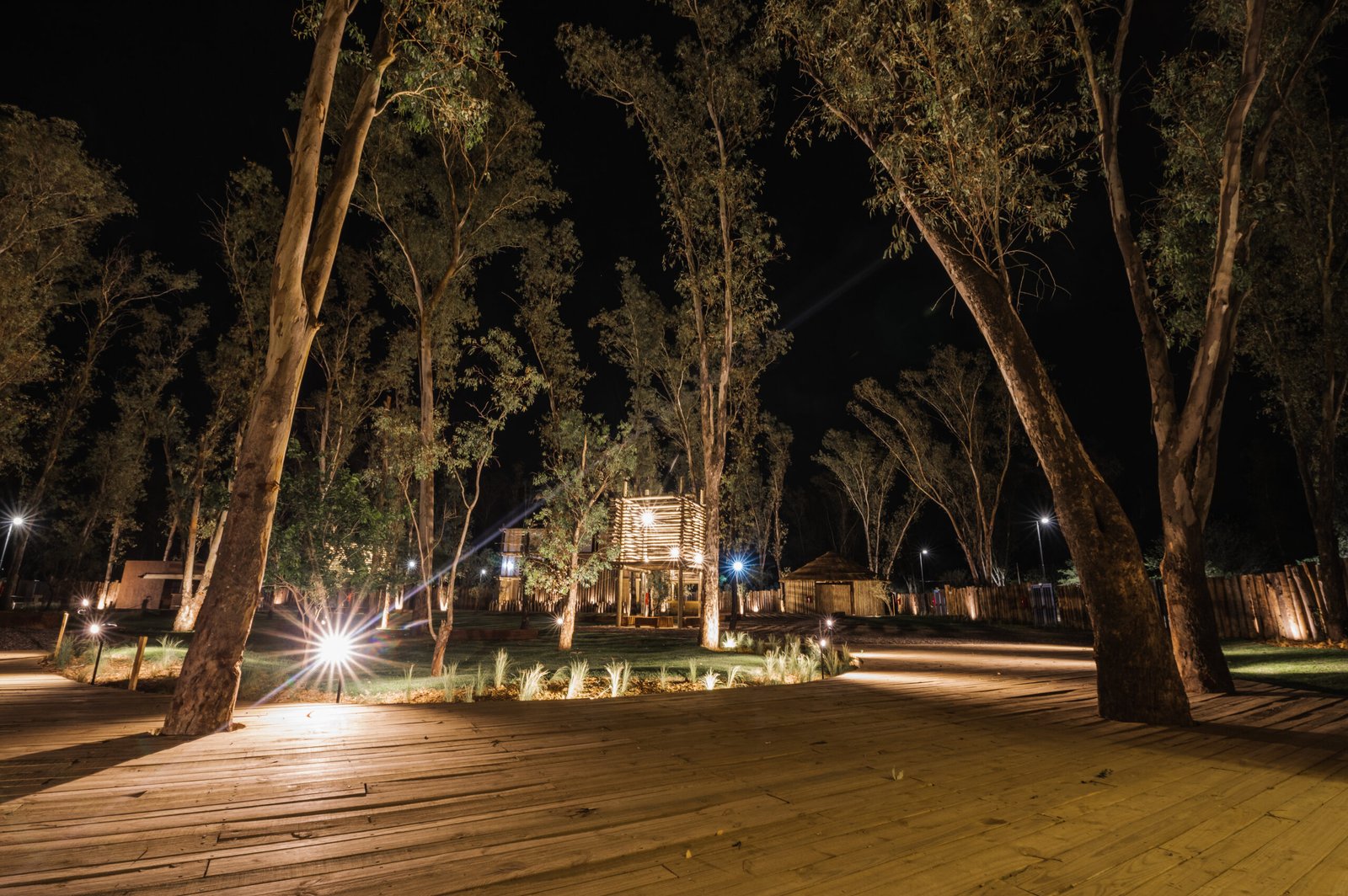 Ingeniería Eléctrica y Señales Débiles para complejo recreativo y de esparcimiento, con espacios gastronómicos, de espectáculos y shows al aire libre, espacios sanitarios, técnicos y parking; todos espacios que se caracterizan por su particular iluminación ornamental nocturna.