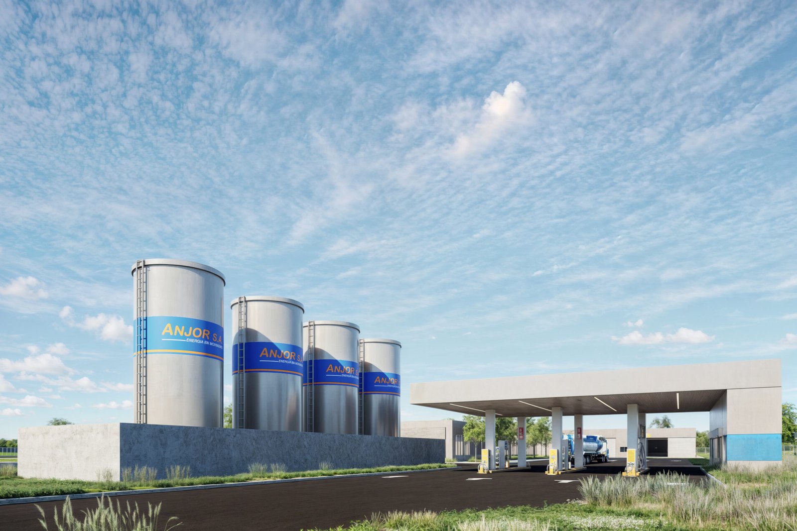 Ingeniería Eléctrica y Señales Débiles para centro de distribución de combustibles líquidos, con alero de distribución de surtidores, espacios administrativos, comedor, dormitorios, áreas exclusivas para choferes de camiones, sistemas de detección de incendios, control de accesos, circuito cerrado de TV y cableado estructurado para datos.