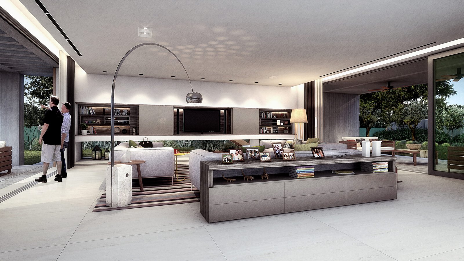 Ingeniería Eléctrica y Señales Débiles para vivienda unifamiliar desarrollada en dos plantas, con áreas públicas y recreativas áreas en planta baja e íntimas en planta alta.